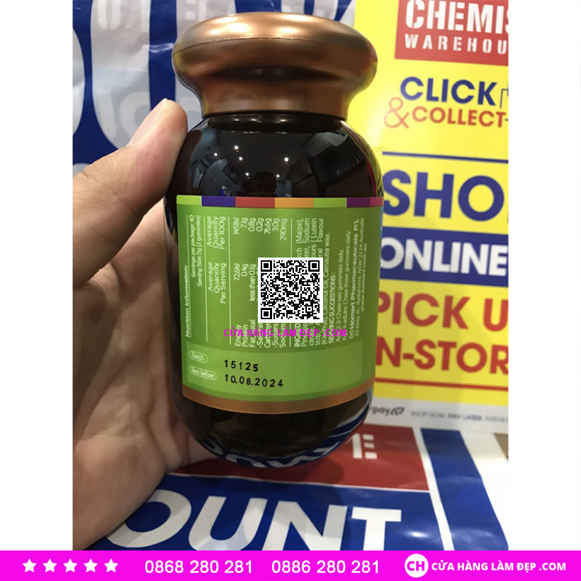 Viên Nhai Bổ Mắt Cho Bé Spring Leaf Aussie Lutein Kids Gummy được khách hàng của Hệ Thống Cửa Hàng Làm Đẹp đánh giá cao. Bạn có thể xem thêm nội dung đánh giá dưới phần bình luận. Hệ thống Cửa Hàng Làm Đẹp là nơi cung cấp các dòng sản phẩm thực phẩm chức năng chăm sóc sức khỏe và làm đẹp cao cấp, chính hãng: + Chúng tôi xin cam kết về chất lượng sản phẩm và chính sách ưu đãi hợp lý cho khách hàng. + Cam kết sản phẩm chính hãng, đầy đủ hóa đơn chứng từ, hàng hoá có nguồn gốc rõ ràng. + Giá ưu đãi tốt nhất thị trường. + Giao hàng toàn quốc: Nhanh chóng - Tiện lợi - Uy tín. + Tư vấn tận tình, chính sách hậu mãi tốt. + Giờ mở cửa hàng: Từ thứ 2 đến Chủ Nhật: 7h30 đến 21h30.