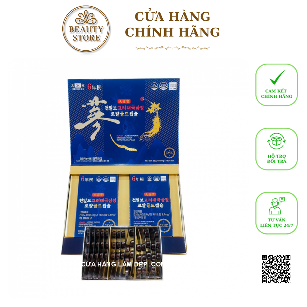 Tại hệ thống cửa hàng làm đẹp, Viên Thiên Sâm Đông Trùng Hạ Thảo Heaven 1 Korean Taekuk Ginseng Extract Royal Gold Capsule có giá: 5.500.000 VND