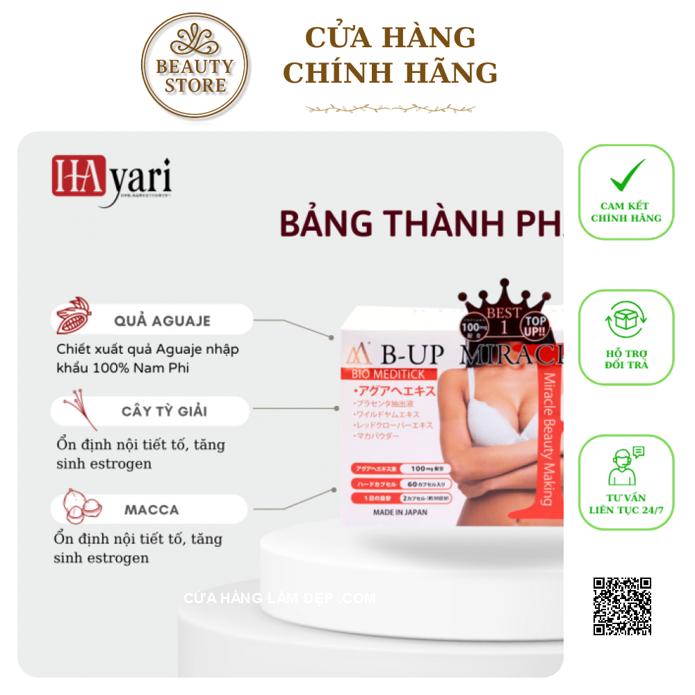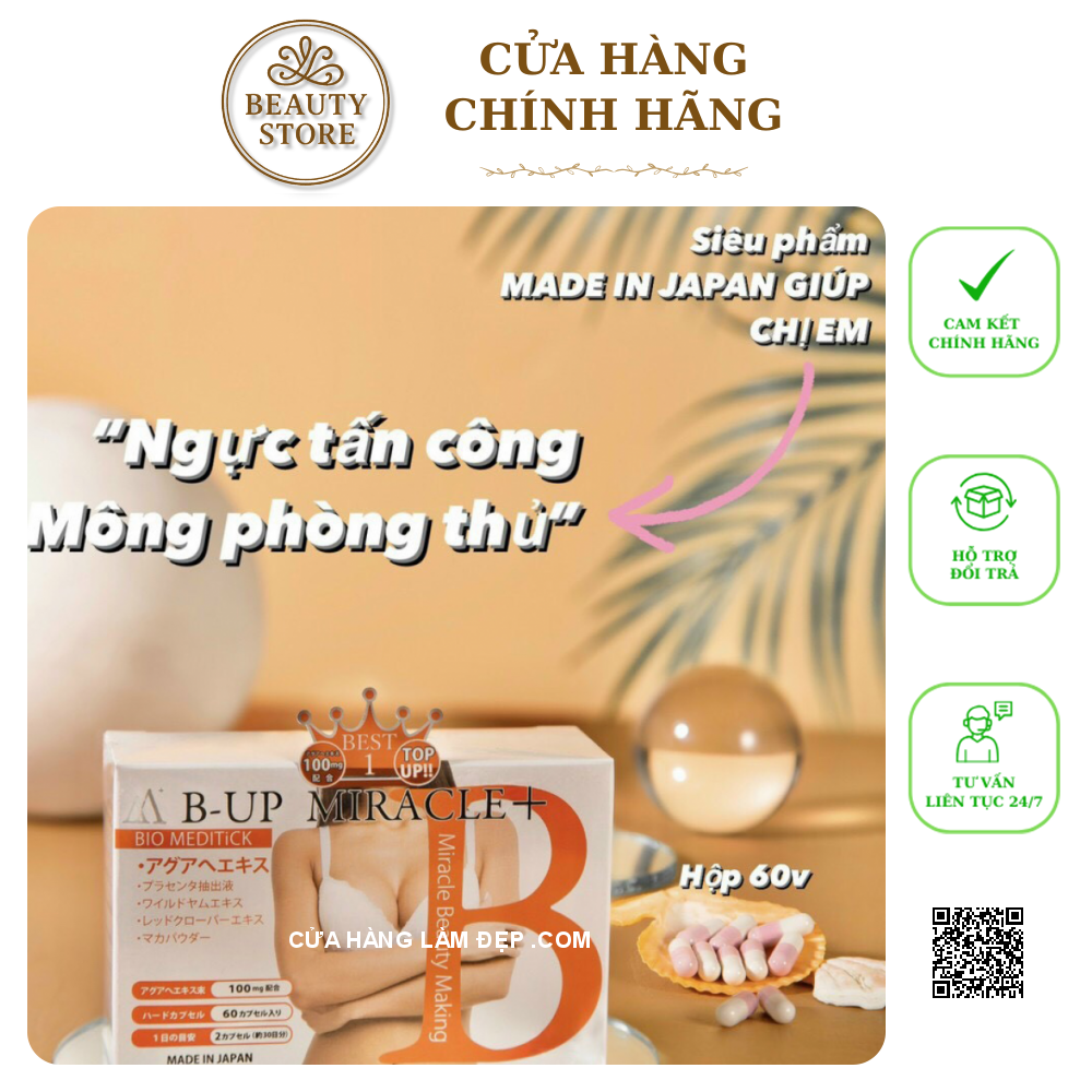 ✔ Viên Uống B-Up Miracle + Nở Ngực, Mông Nhật Bản với công thức vàng chiết xuất Aguaje, , cây tỳ giải,... giúp tăng sinh estrogen, hỗ trợ nội tiết, thúc đẩy nở ngực, nở mông tự nhiên, an toàn từ bên trong.
