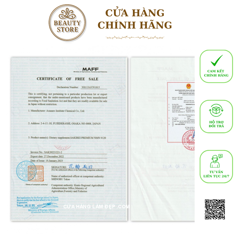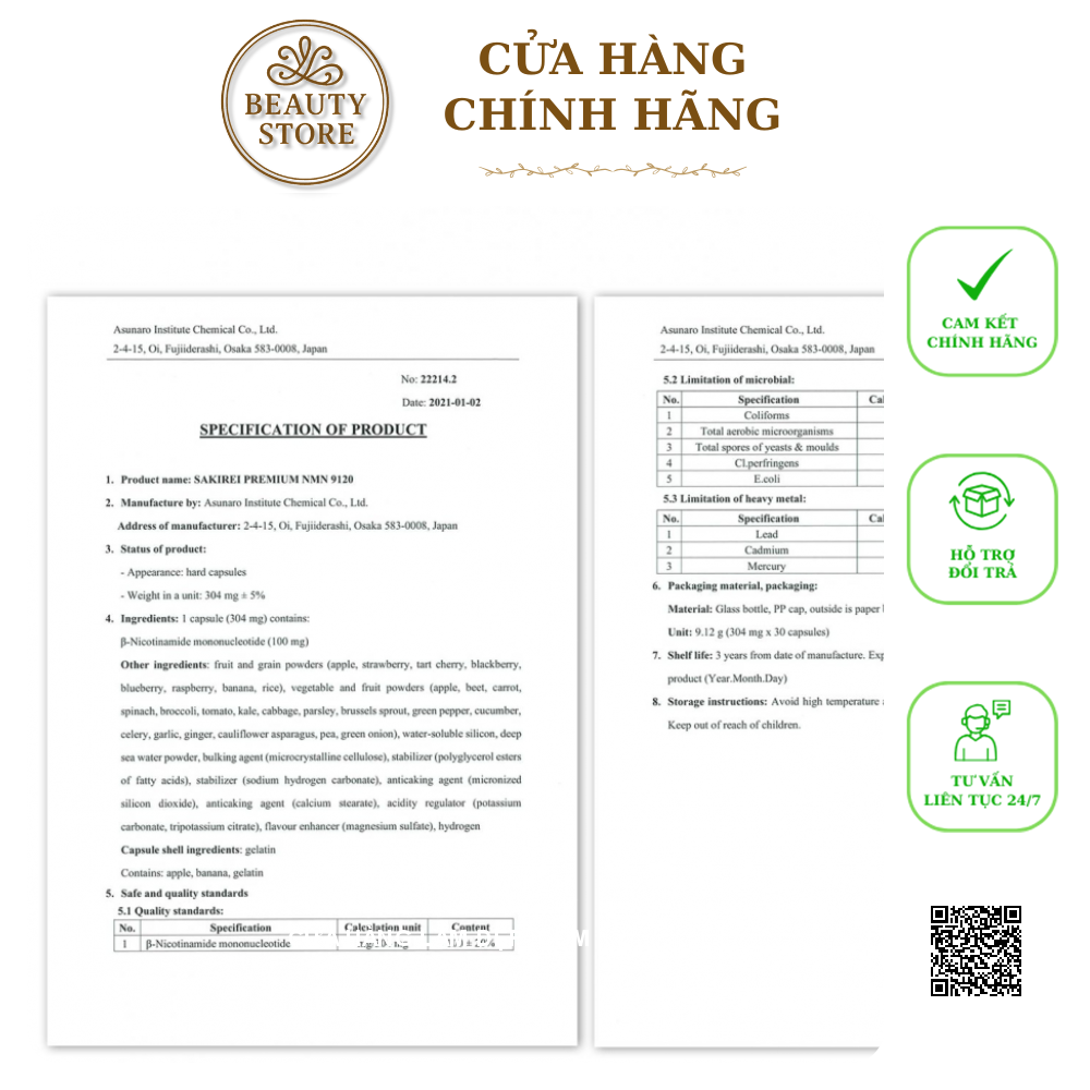 Lưu ý: Sakirei Premium NMN 9120 không phải là và không có tác dụng thay thế chữa bệnh.