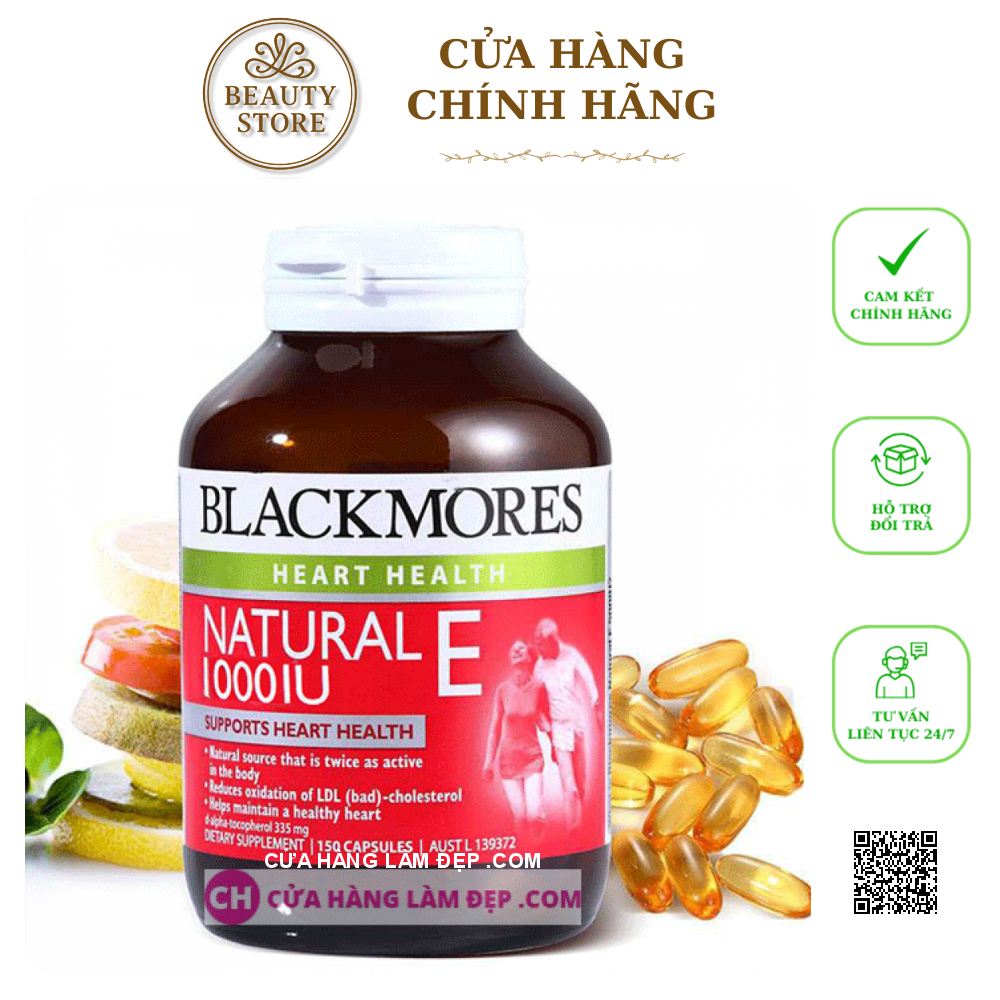 - Viên uống blackmores heart health natural e 1000iu bổ sung hàm lượng vitamin E cần thiết mỗi ngày cho cơ thể.