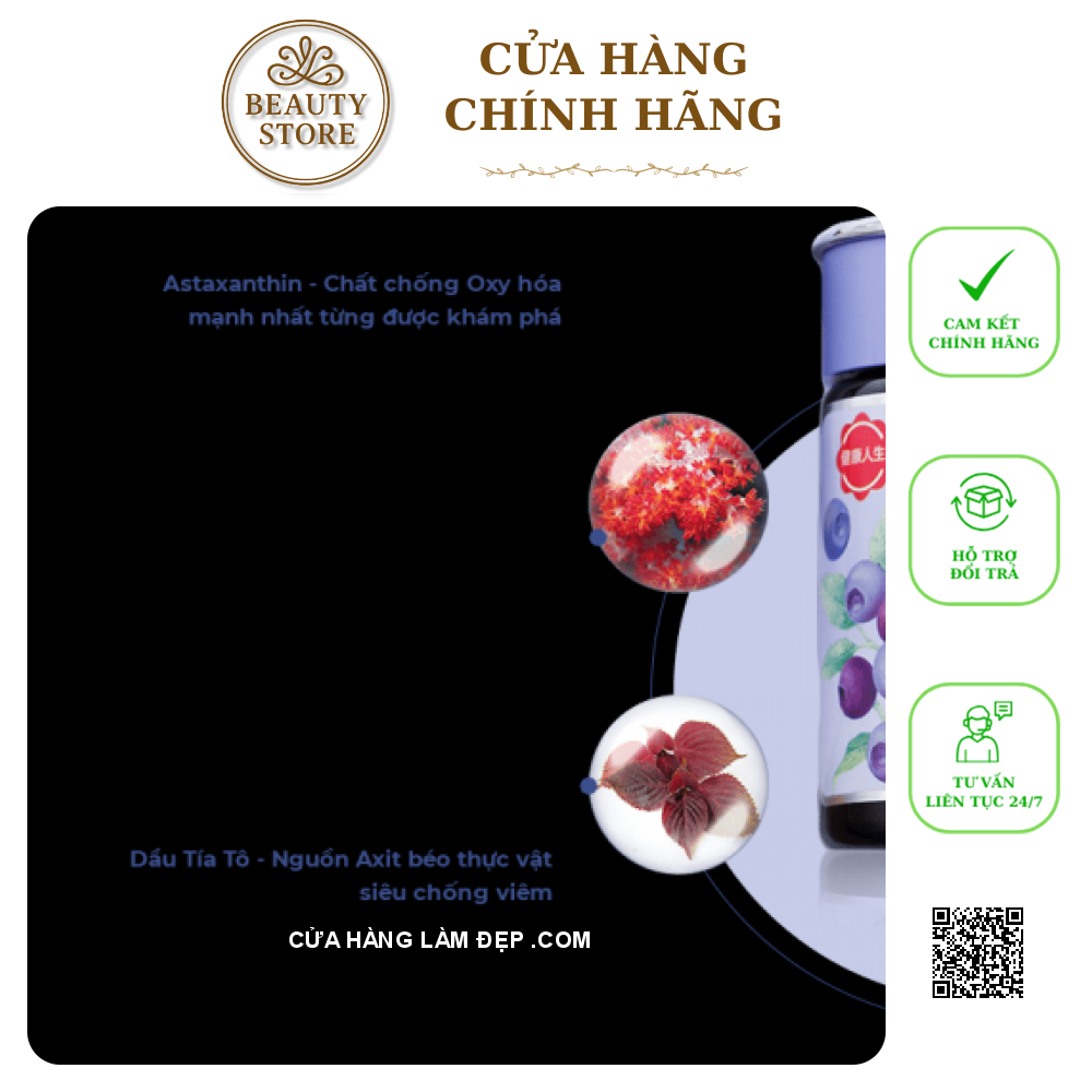 - Trong khi chiết xuất Việt quất giàu anthocyanin bảo vệ đôi mắt khỏe mạnh trước màn hình thiết bị di động mỗi ngày, hoạt chất Astaxanthin từ trứng cá hồi và DHA bổ sung dưỡng chất cho đôi mắt sáng tinh anh, não bộ minh mẫn và tim mạch khỏe mạnh.