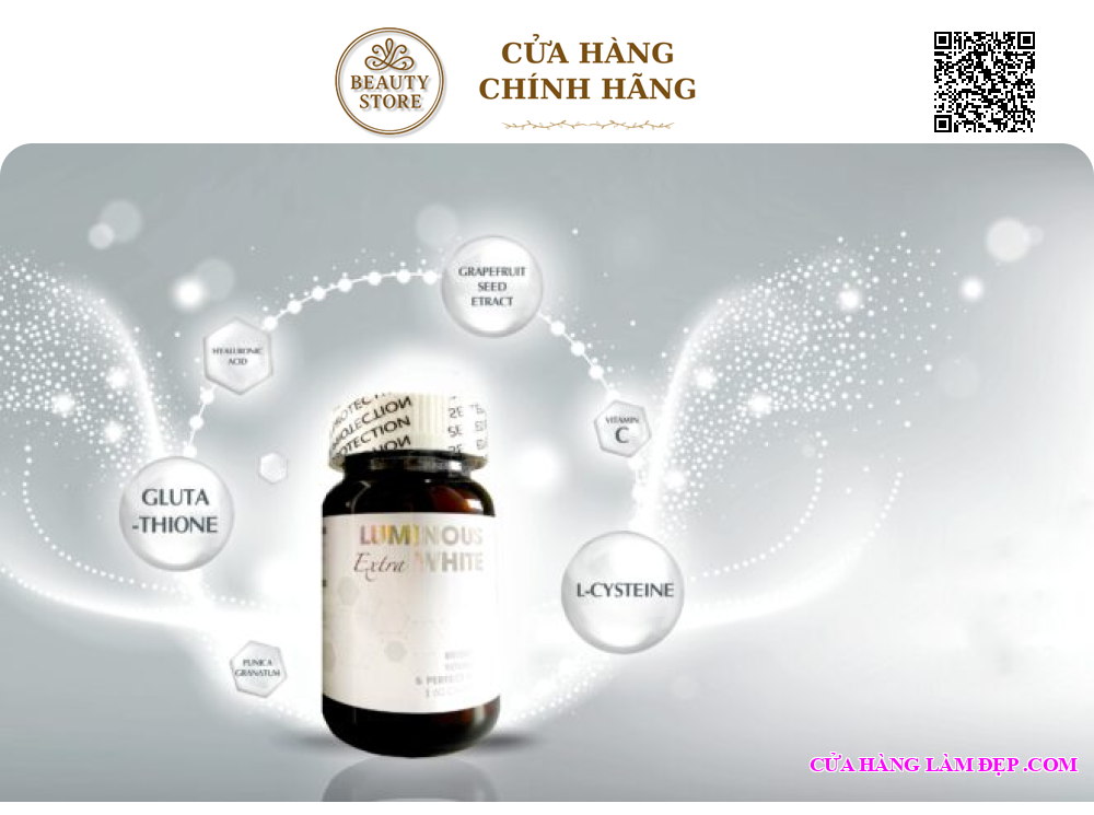 – Viên Uống Brighter Younger & Perfect Skin Luminous Extra White với hàm lượng Glutathione 1200mg giúp cải thiện tone màu da hiệu quả.