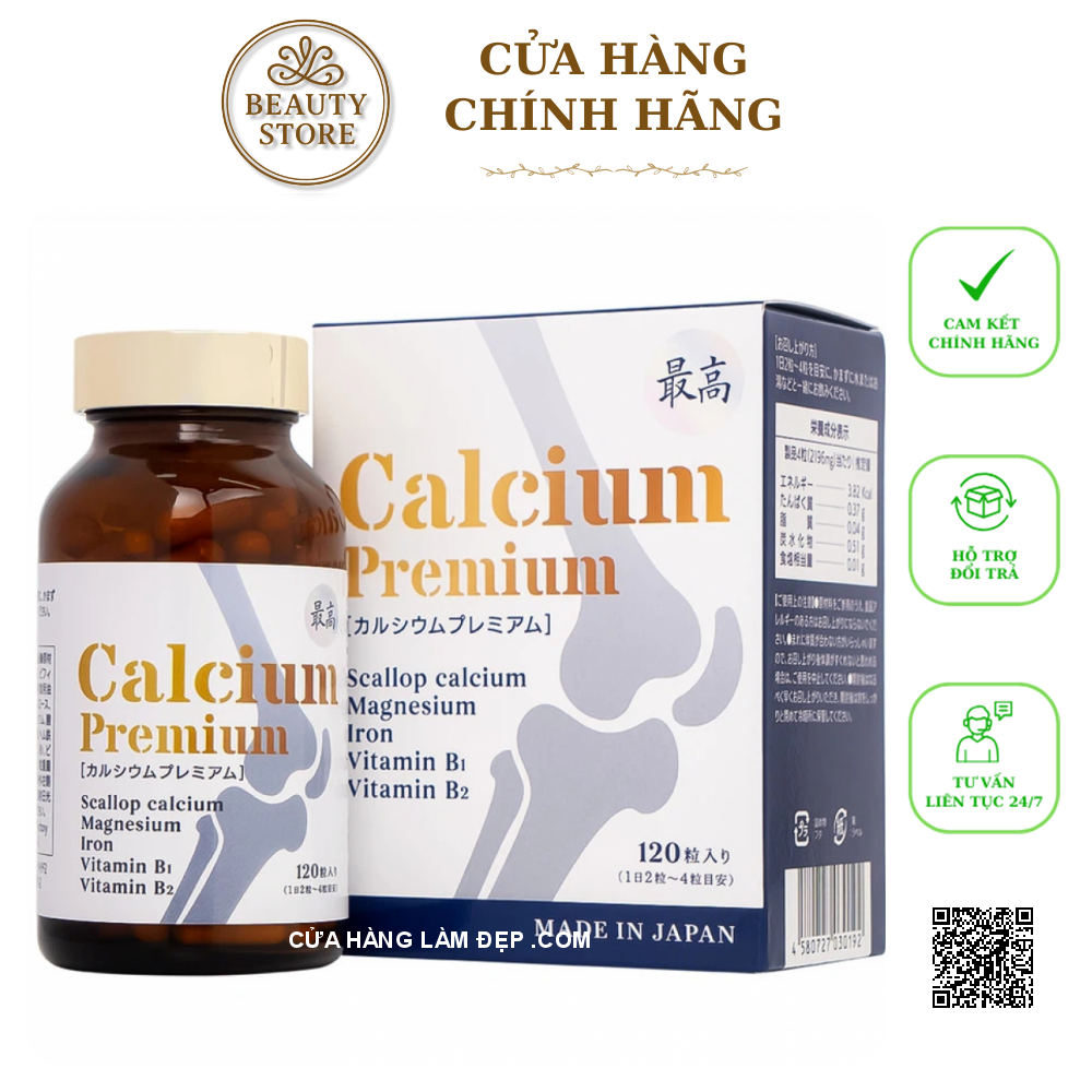 Thực phẩm bảo vệ sức khỏe Calcium Premium bổ sung canxi, một số các vitamin (vitamin B1, vitamin B2, vitamin D3, vitamin K2) và khoáng chất (magie, sắt) cho cơ thể; hỗ trợ tăng khả năng hấp thụ canxi; hỗ trợ giảm nguy cơ loãng xương.