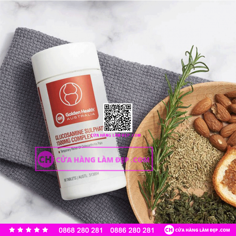 - Viên Uống Glucosamine Sulphate 1500Mg Complex là sản phẩm bảo vệ sức khỏe đến từ thương hiệu Golden Health của Úc. Được nghiên cứu và điều chế bởi những chuyên gia hàng đầu trong ngành và sản xuất theo tiêu chuẩn khắt khe nhất, sản phẩm đã được kiểm chứng lâm sàng là có hiệu quả trong việc hỗ trợ điều giảm các bệnh lý về xương khớp cũng như giảm các cơn đau nhức khớp.