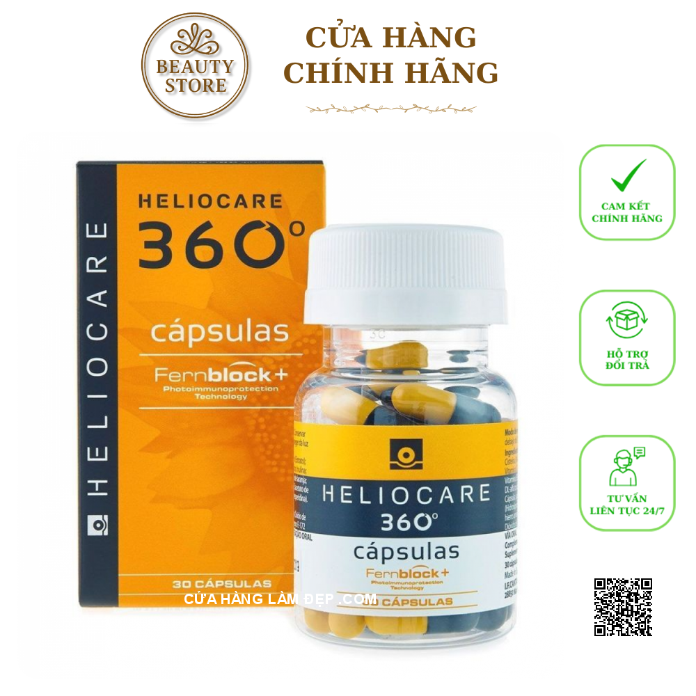 - Viên Uống Heliocare 360° Capsules hỗ trợ Hỗ Trợ Chống Nắng với các thành phần hỗ trợ Hỗ Trợ Chống nắng từ tự nhiên, đảm bảo an toàn cho làn da của bạn, hạn chế tối đa những kích ứng có thể xảy ra, ngay cả những làn da nhạy cảm nhất.