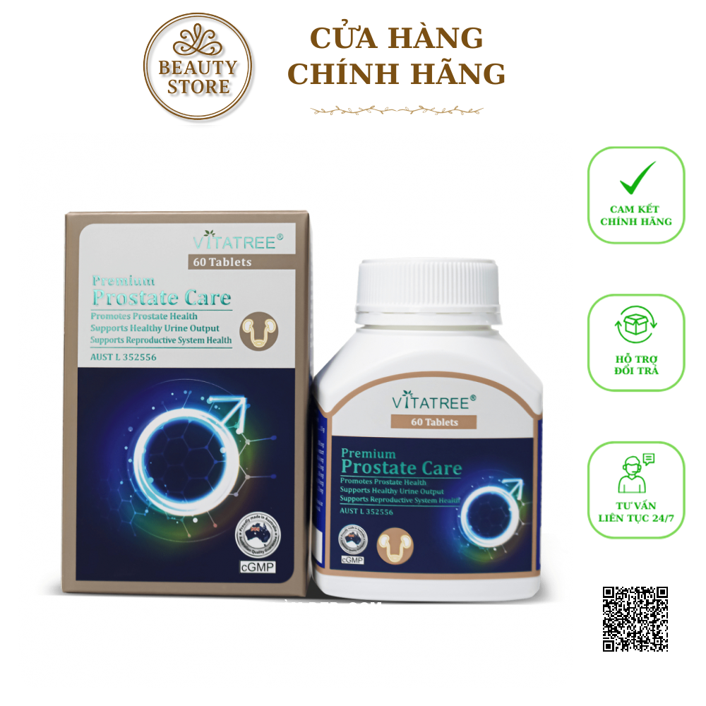 Vitatree Prostate Care là một sản phẩm hỗ trợ chức năng tuyến tiền liệt cho nam. Với công thức chiết xuất từ thảo dược thiên nhiên: Cọ lùn, cây tầm ma, tùng bách, cà chua, cùng kẽm, selen có tác dụng cải thiện các triệu chứng khó tiểu, tiểu rắt, tiểu đêm do phì đại tuyến tiền liệt lành tính.