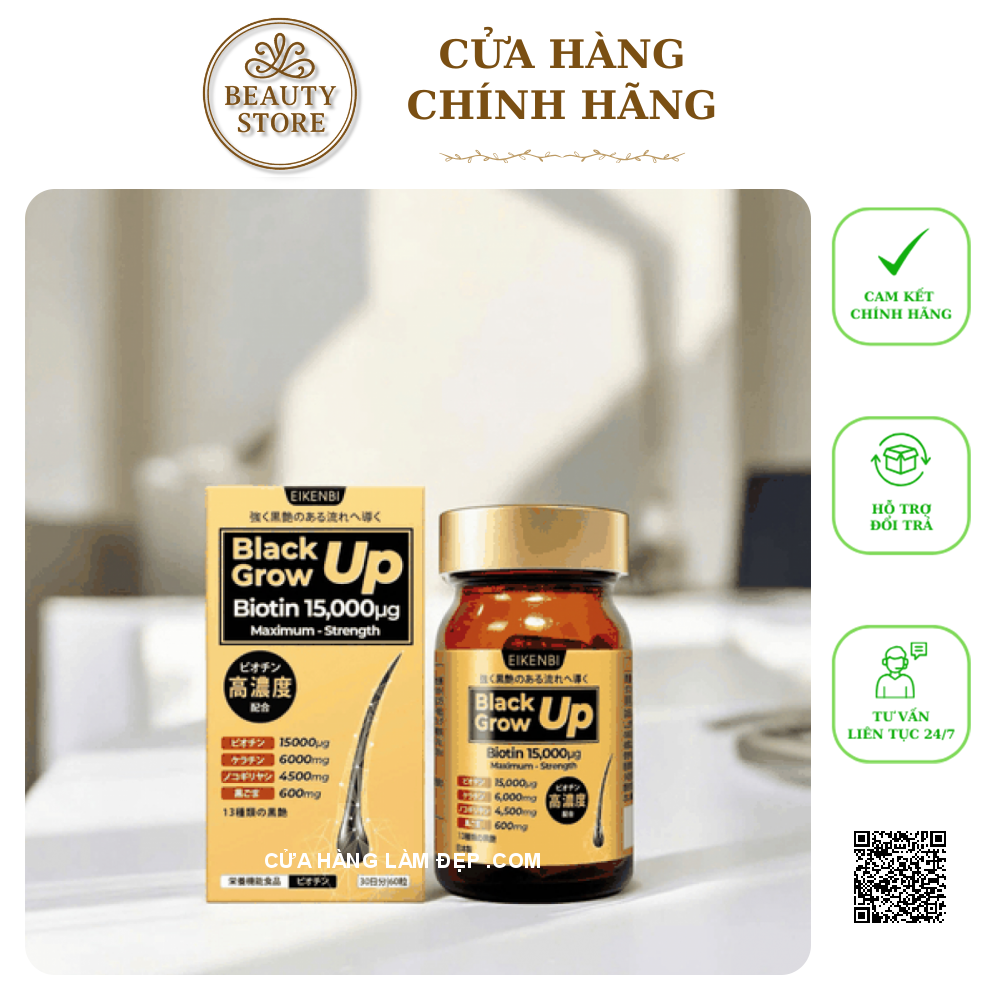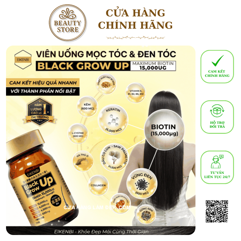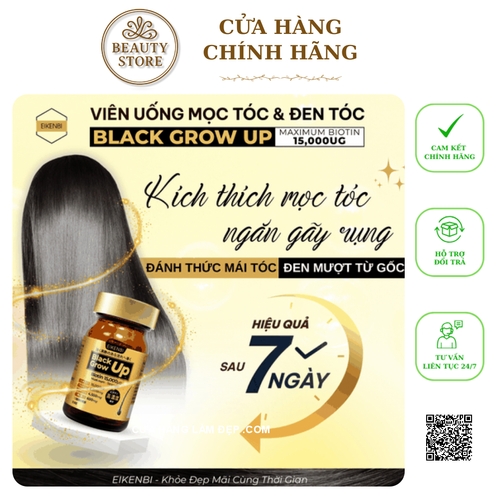 Viên Uống Mọc Tóc & Đen Tóc Black Grow Up Maximum Biotin 15,000µg Eikenbi được khách hàng của Hệ Thống Cửa Hàng Làm Đẹp đánh giá cao.
