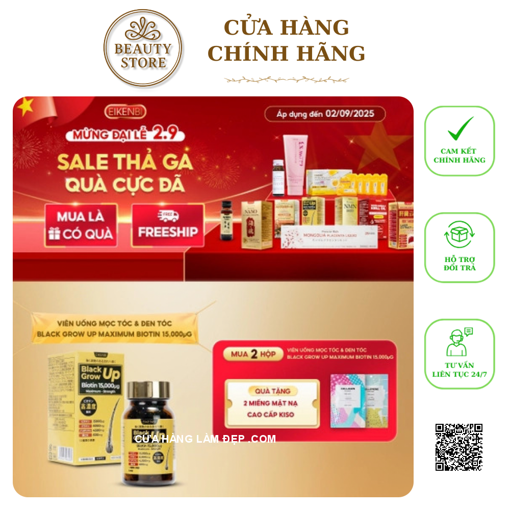 Tại hệ thống Cửa Hàng Làm Đẹp, sản phẩm Viên Uống Mọc Tóc & Đen Tóc Black Grow Up Maximum Biotin 15,000µg Eikenbi có giá 790.000 VNĐ