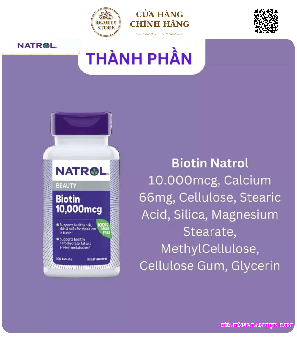 2. Thành Phần Viên Uống Biotin Natrol 10,000mcg