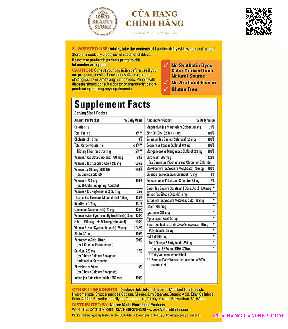 Địa chỉ mua Viên Uống Nature Made Daily Diabetes Health Pack Cho Người Tiểu Đường Từ Mỹ (Hộp 60 Gói x 6 Viên) chính hãng tại Hà Nội :