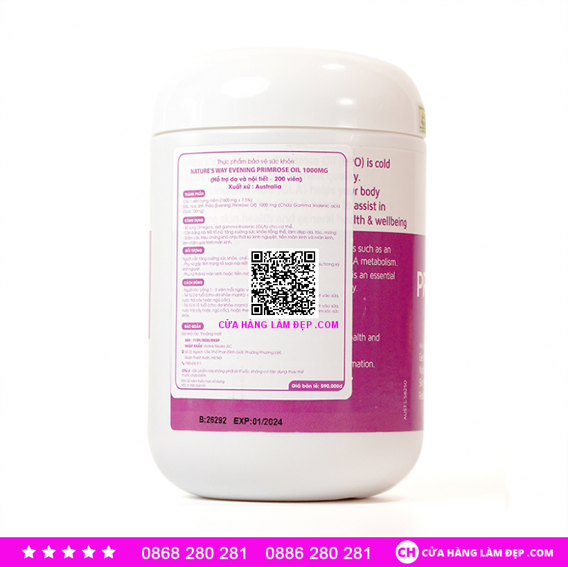 - Bạn có thể tìm mua Viên Uống Nature's Way Evening Primrose Oil 1000mg qua website: cuahanglamdep.com - Hoặc đến trực tiếp Cửa Hàng Làm Đẹp : 234 Huỳnh Văn Bánh, P.11, Q. Phú Nhuận , TP.HCM - Điện thoại: 0886.280.281 Hoặc 0868.280.281
