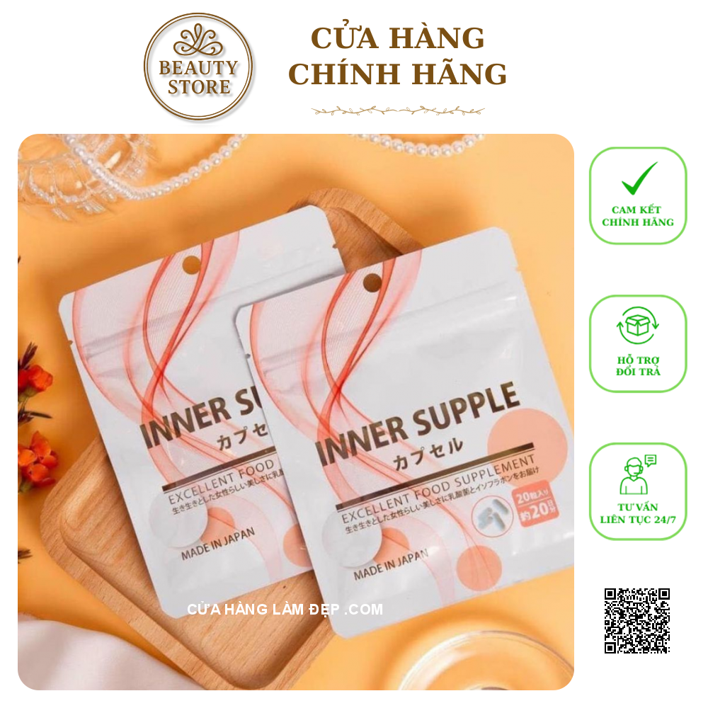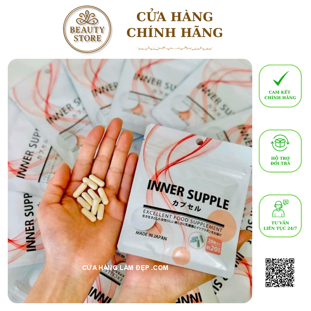 - Inner Supple có đặc điểm là được sản sinh từ mầm đậu nành lên men và phân hủy bởi vi khuẩn đường ruột, giống như thực phẩm lên men không chất bảo quản, phụ gia. Ngoài gia còn có các thành phần vô cùng tốt cho sức khỏe như sâm tố nữ, các loại vitamin, các loại men nấm, trứng cá, cây cỏ ngọt…