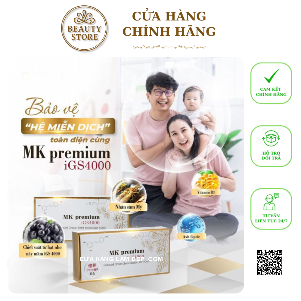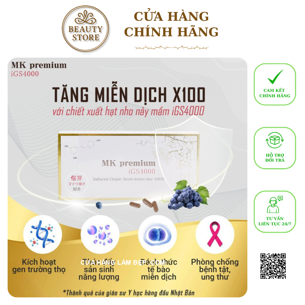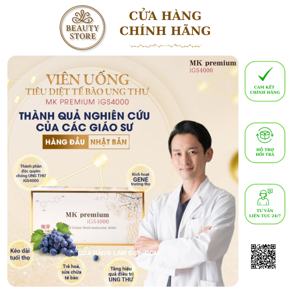 Nếu như mọi người hay quan tâm đến phương pháp ăn uống khoa học hay thực phẩm organic để phòng hỗ trợ Hỗ Trợ Chống ung thư, thì chắc chắn sẽ không thể bỏ qua MK premium – Viên uống giúp phòng hỗ trợ Hỗ Trợ Chống ung thư và kéo dài tuổi thọ, với thành phần đặc biệt từ hạt nho nảy mầm GSPP/iGS4000, được cấp bằng sáng chế, IGS 4000 cho thấy hiệu quả rõ rệt với các bệnh nhân đang điều giảm ung thư, giúp kéo dài tuổi thọ và giảm tác dụng phụ cho bệnh nhân đang hoá giảm, xạ giảm.