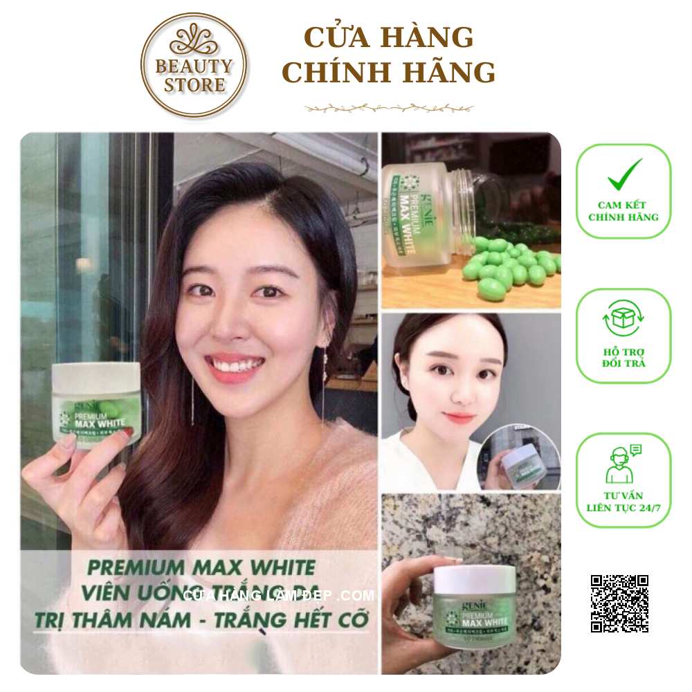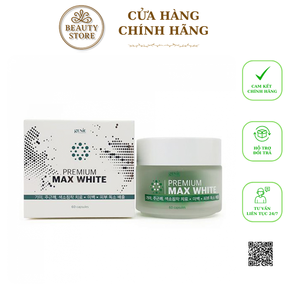 Giới thiệu Viên Uống Trắng Da, Cân Bằng Nội Tiết Tố Genie Premium Max White Màu Xanh