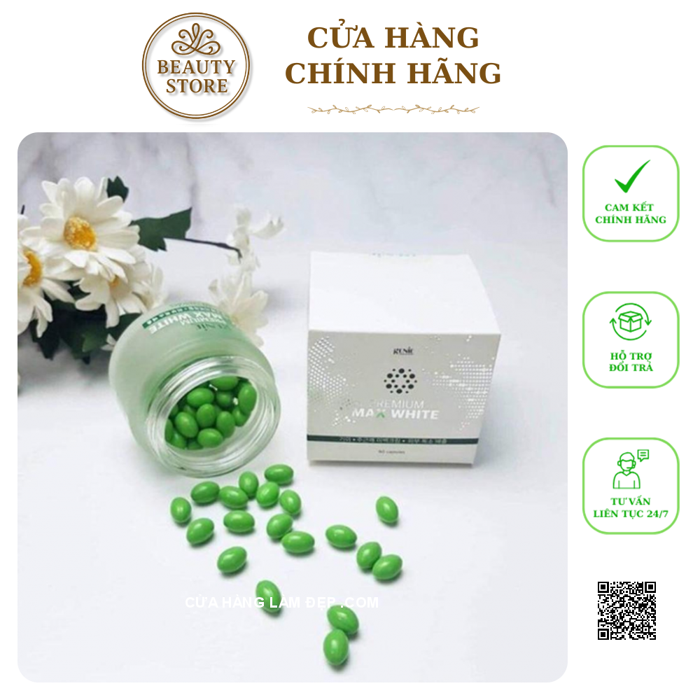 Viên Uống Trắng Da, Cân Bằng Nội Tiết Tố Genie Premium Max White Màu Xanh được nghiên cứu và sản xuất tại Hàn Quốc. Sản phẩm cũng đã được cấp giấy chứng nhận an toàn chuẩn y tế Thế Giới.
