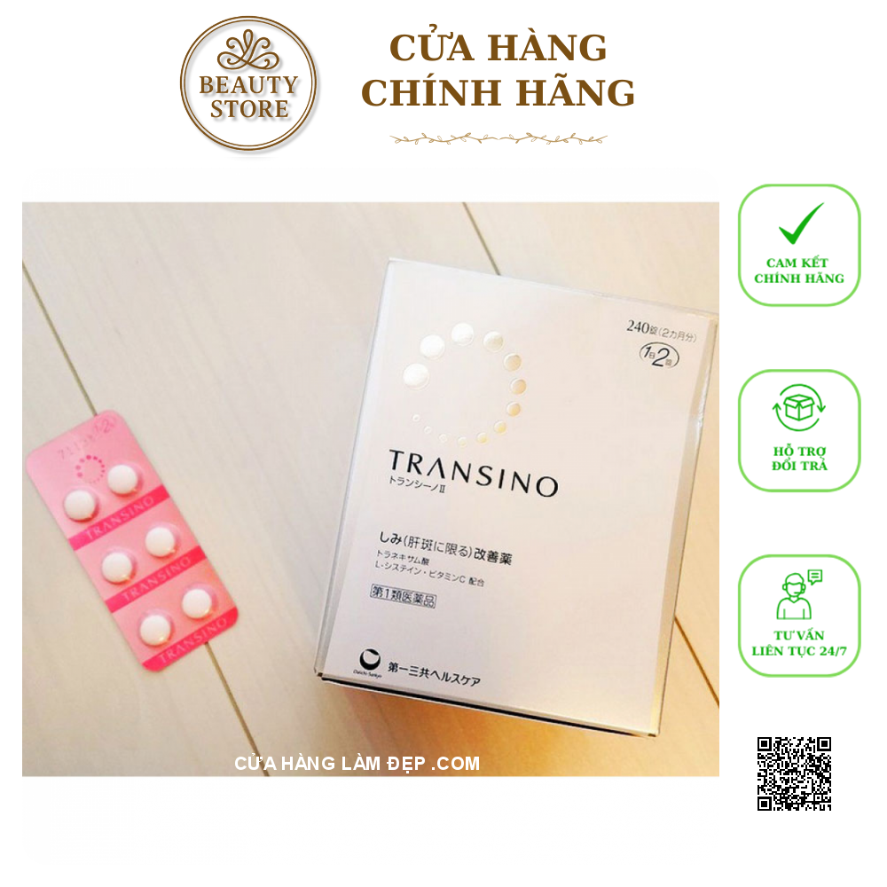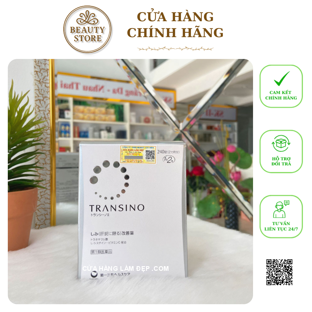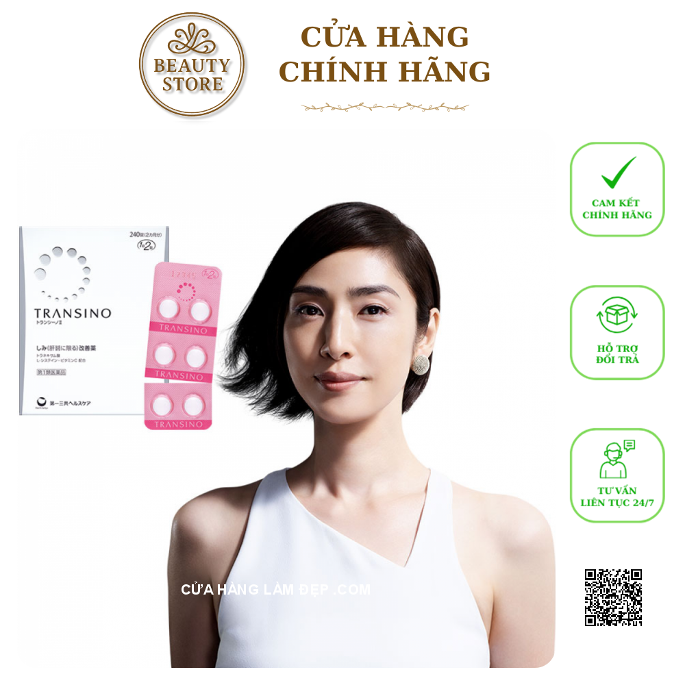 - Transino là một trong những nhãn hiệu làm trắng da tốt nhất của Nhật, cực kỳ hiệu quả trong việc làm trắng và loại bỏ các vết nám, vết thâm, tàn nhang, đồi mồi, chàm.