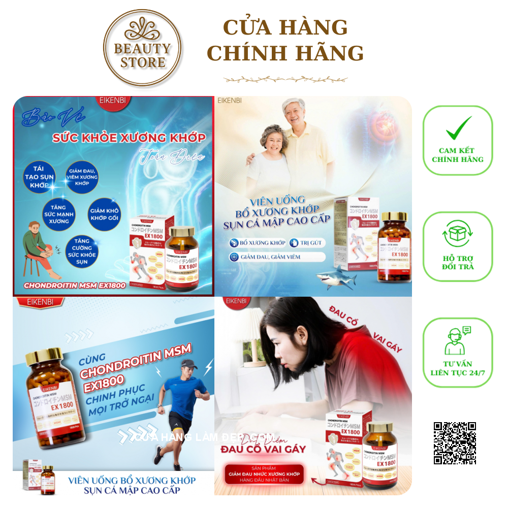 Giới thiệu Viên Uống Xương Khớp Sụn Cá Mập Chondroitin MSM Ex1800 Eikenbi: