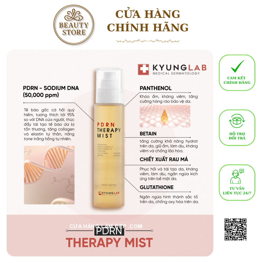 Xịt khoáng dưỡng ẩm Kyung Lab Pdrn Therapy Mist hỗ trợ cấp ẩm và phục hồi làm dịu da, giúp da tươi sáng, rạng rỡ mà không gây bí hay bết dính da. Sản phẩm thiết kế với dạng đầu xịt thông minh, bạn có thể bỏ túi mang theo sử dụng bất cứ lúc nào cần thiết.