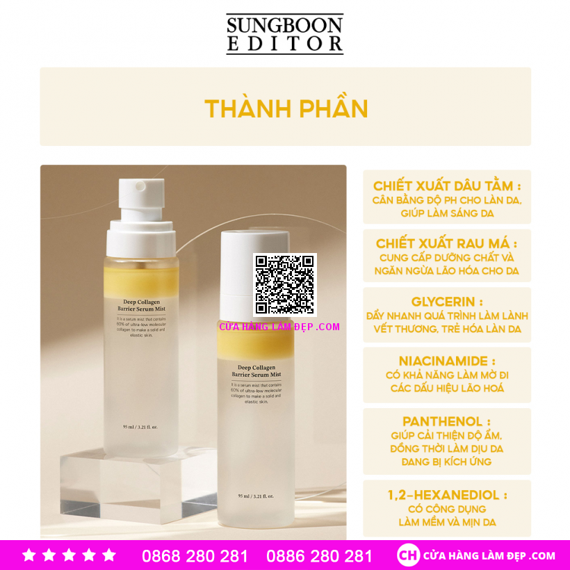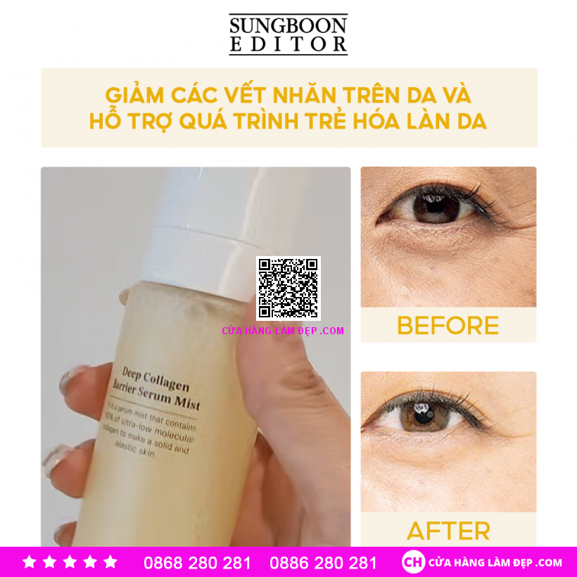- Bạn có thể tìm mua Sungboon Editor Deep Collagen Barrier Serum Mist qua website: cuahanglamdep.com