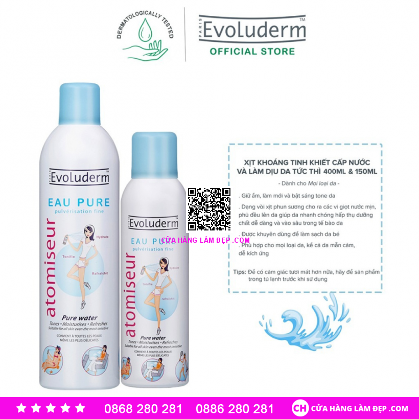 Tại hệ thống Cửa Hàng Làm Đẹp, sản phẩm Evoluderm Xịt Khoáng Cấp Nước & Làm Dịu Da 400ml có giá 295.000 VNĐ