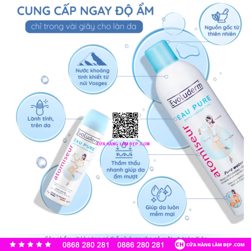 Evoluderm Xịt Khoáng Cấp Nước & Làm Dịu Da được khách hàng của Hệ Thống Cửa Hàng Làm Đẹp đánh giá cao.
