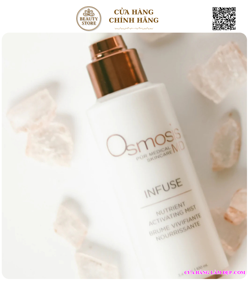 Xịt khoáng Osmosis Infuse Nutrient Activating Mist là bước đệm hoàn hảo trong chu trình chăm sóc da, giúp da được “đánh thức” với làn sương nhẹ dịu đầy dưỡng chất. Nhờ sự kết hợp giữa axit fulvic và axit humic – hai thành phần quý giá từ thiên nhiên, sản phẩm giúp làm dịu tức thì, cung cấp độ ẩm sâu và thanh lọc làn da khỏi các tạp chất. Không chỉ vậy, xịt khoáng còn giúp tăng khả năng hấp thụ của các bước dưỡng tiếp theo, mang lại làn da mềm mại, sáng khỏe và tràn đầy sức sống.