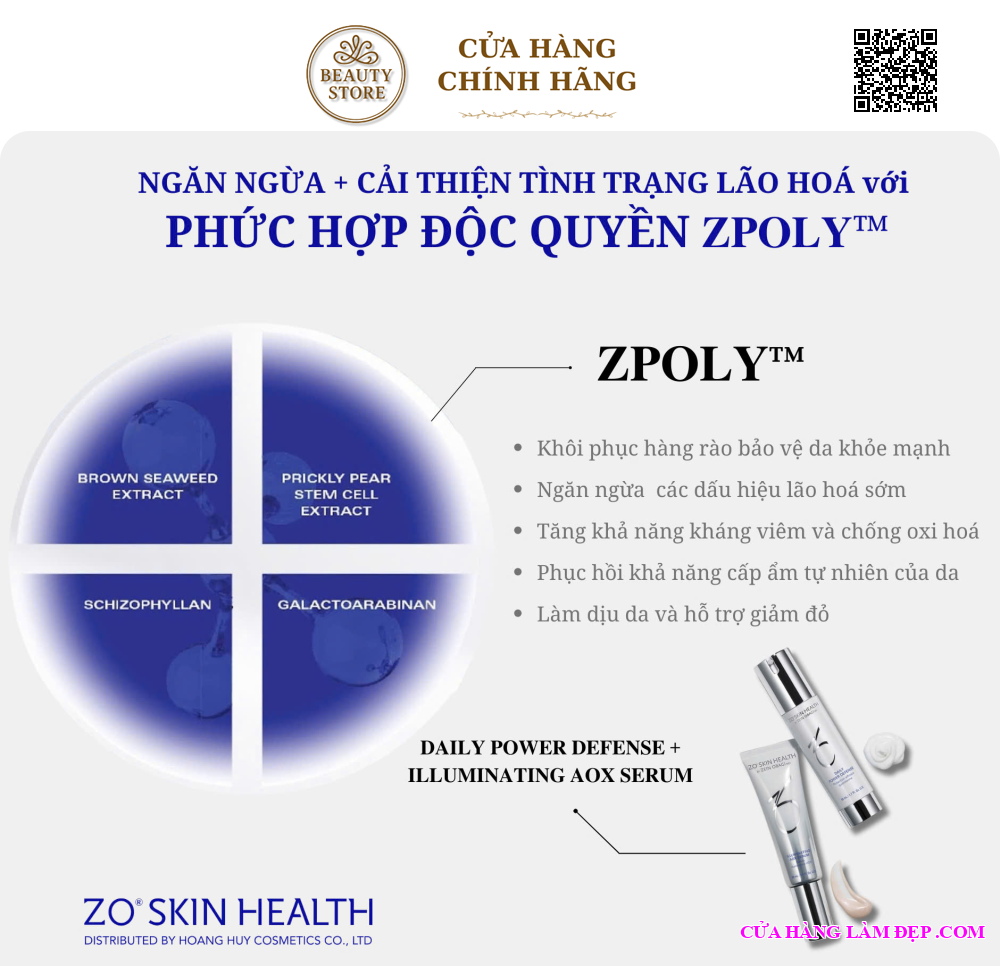 Với công thức cô đặc chứa các phức hợp độc quyền như ZOX12®, ZO-RRS2®, ZPOLY™ cùng vitamin A, C, E, serum này giúp da khỏe mạnh, phục hồi độ sáng trẻ trung và giảm thiểu khuyết điểm chỉ sau một thời gian ngắn sử dụng.